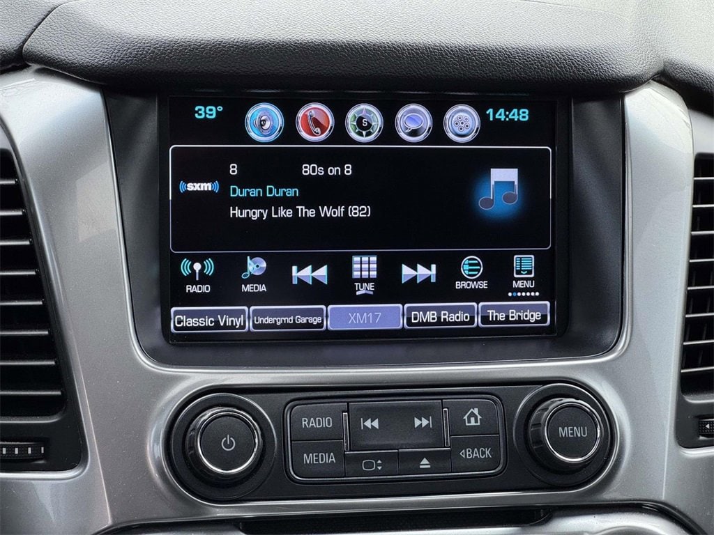 Recent Arrival! APPLY FOR FINANCING ONLINE, ONLINE APPRAISALS AVAILABLE, 10 Speakers, 1st & 2nd Row Color-Keyed Carpeted Floor Mats, 3.08 Rear Axle Ratio, 3rd Row 60/40 Power Fold Split-Bench, 3rd row seats: split-bench, 4-Wheel Antilock Disc Brakes w/Brake Assist, 4-Wheel Disc Brakes, 5 12-Volt Auxiliary Power Outlets, 6-Way Power Front Passenger Seat Adjuster, ABS brakes, Adaptive Cruise Control w/Front Automatic Braking, Adaptive suspension, Adjustable pedals, Air Conditioning, Alloy wheels, AM/FM radio: SiriusXM, Apple CarPlay/Android Auto, Auto High-beam Headlights, Auto-dimming door mirrors, Auto-Dimming Inside Rear-View Mirror, Auto-dimming Rear-View mirror, Automatic Collision Preparation, Automatic temperature control, Black Assist Steps w/Chrome Accent Strip, Bodyside moldings, Bose Centerpoint Premium 10-Speaker Surround Sound, Brake assist, Bumpers: body-color, Cargo Net, CD player, Color-Keyed Carpeting Floor Covering, Compass, Delay-off headlights, Driver door bin, Driver Inboard & Front Passenger Airbags, Driver vanity mirror, Dual front impact airbags, Dual front side impact airbags, Electronic Cruise Control w/Set & Resume Speed, Electronic Stability Control, Emergency communication system: OnStar Guidance, Enhanced Driver Alert Package (Y86), Enhanced Driver Information Center, Exterior Parking Camera Rear, Floor Console, Fog Lamps, Forward Collision Alert Sensor Indicator, Front & Rear Parking Assist, Front anti-roll bar, Front Bucket Seats, Front Center Armrest, Front dual zone A/C, Front fog lights, Front Heated Reclining Bucket Seats, Front reading lights, Front wheel independent suspension, Fully automatic headlights, Garage door transmitter, Hands Free Power Liftgate, Head-Up Display, Heated & Vented Driver & Front Passenger Seats, Heated 2nd Row Seats, Heated door mirrors, Heated front seats, Heated Leather Wrapped Steering Wheel, Heated rear seats, Heated steering wheel, High-Intensity Discharge Headlights, Illuminated entry, IntelliBeam Headlamps, Lane Keep Assist, License Plate Front Mounting Package, Low Speed Forward Automatic Braking, Low tire pressure warning, Magnetic Ride Control Suspension Package, Memory seat, Memory Settings, Navigation System, NavTraffic, Occupant sensing airbag, OnStar Basic Plan For 5 Years, Outside temperature display, Overhead airbag, Overhead console, Panic alarm, Passenger door bin, Passenger vanity mirror, Passive Entry System, Pedal memory, Perforated Leather-Appointed Seat Trim, Power door mirrors, Power driver seat, Power Liftgate, Power passenger seat, Power Release 2nd Row Bucket Seats, Power steering, Power Sunroof, Power Tilt & Telescopic Steering Column, Power windows, Power-Adjustable Accelerator & Brake Pedals, Power-Folding Heated Outside Mirrors, Preferred Equipment Group 1LZ, Premium audio system: Chevrolet MyLink, Push Button Keyless Start, Radio: Chevrolet MyLink w/Nav/AM/FM Stereo, Rain sensing wipers, Rear air conditioning, Rear anti-roll bar, Rear Cross-Traffic Alert, Rear reading lights, Rear Seat Blu-Ray/DVD Entertainment System, Rear window defroster, Rear window wiper, Remote Keyless Entry, Remote keyless entry, Remote Vehicle Start, Roof rack: rails only, Roof-Mounted Luggage Rack Side Rails, Security system, Side Blind Zone Alert w/Lane Change Alert, Single-Slot CD/MP3 Player, SiriusXM Satellite Radio, Speed control, Speed-sensing steering, Split folding rear seat, Spoiler, Steering wheel memory, Steering wheel mounted audio controls, Sun, Entertainment & Destinations Package, Tachometer, Telescoping steering wheel, Tilt steering wheel, Traction control, Trip computer, Turn signal indicator mirrors, Universal Home Remote, VAC Power 4-Wheel Disc & 4-Wheel Antilock Brakes, Variably intermittent wipers, Ventilated front seats, Voltmeter, Wheels: 20" x 9" Chrome, Wheels: 20" x 9" Polished-Aluminum, Wireless Charging.2017 Chevrolet Tahoe Premier Silver Ice Metallic 4WD EcoTec3 5.3L V8 6-Speed Automatic Electronic with Overdrive